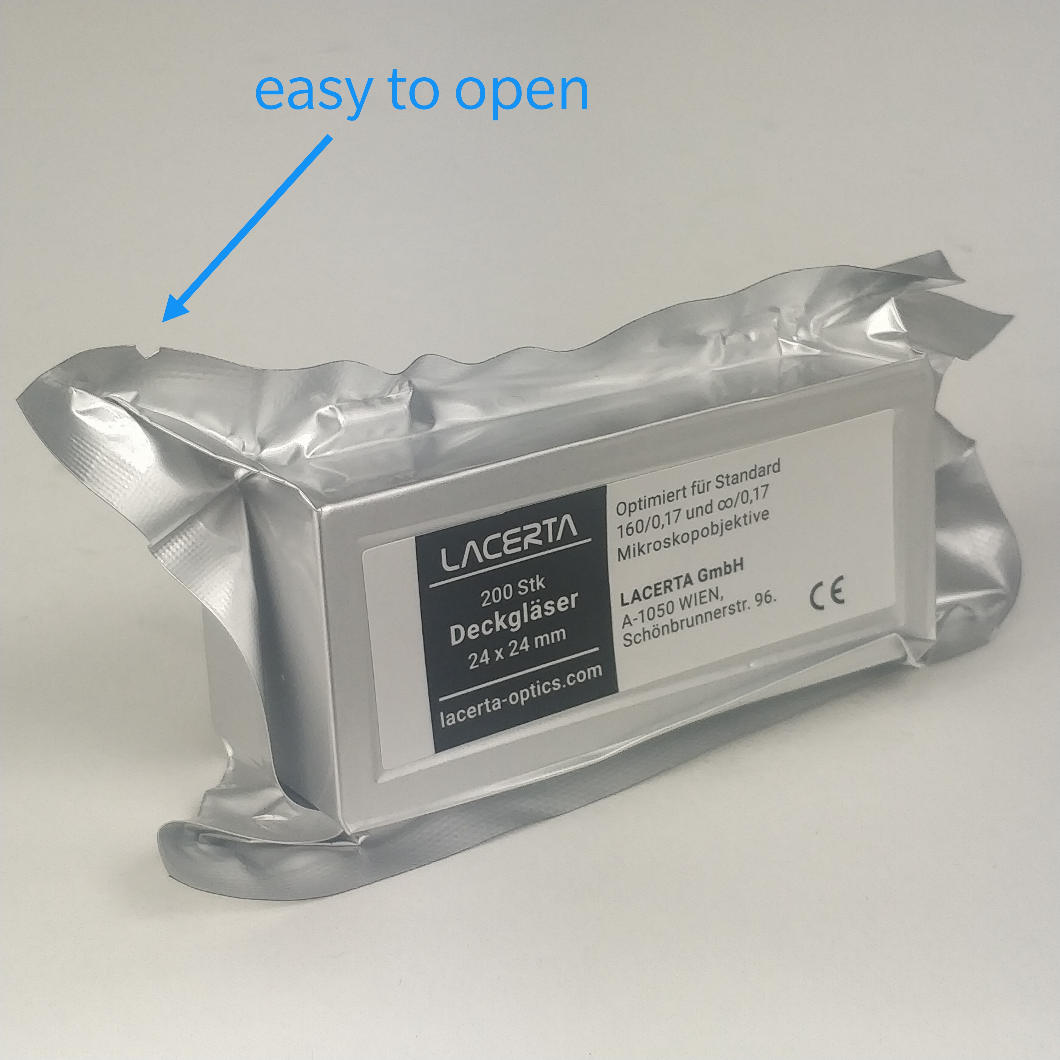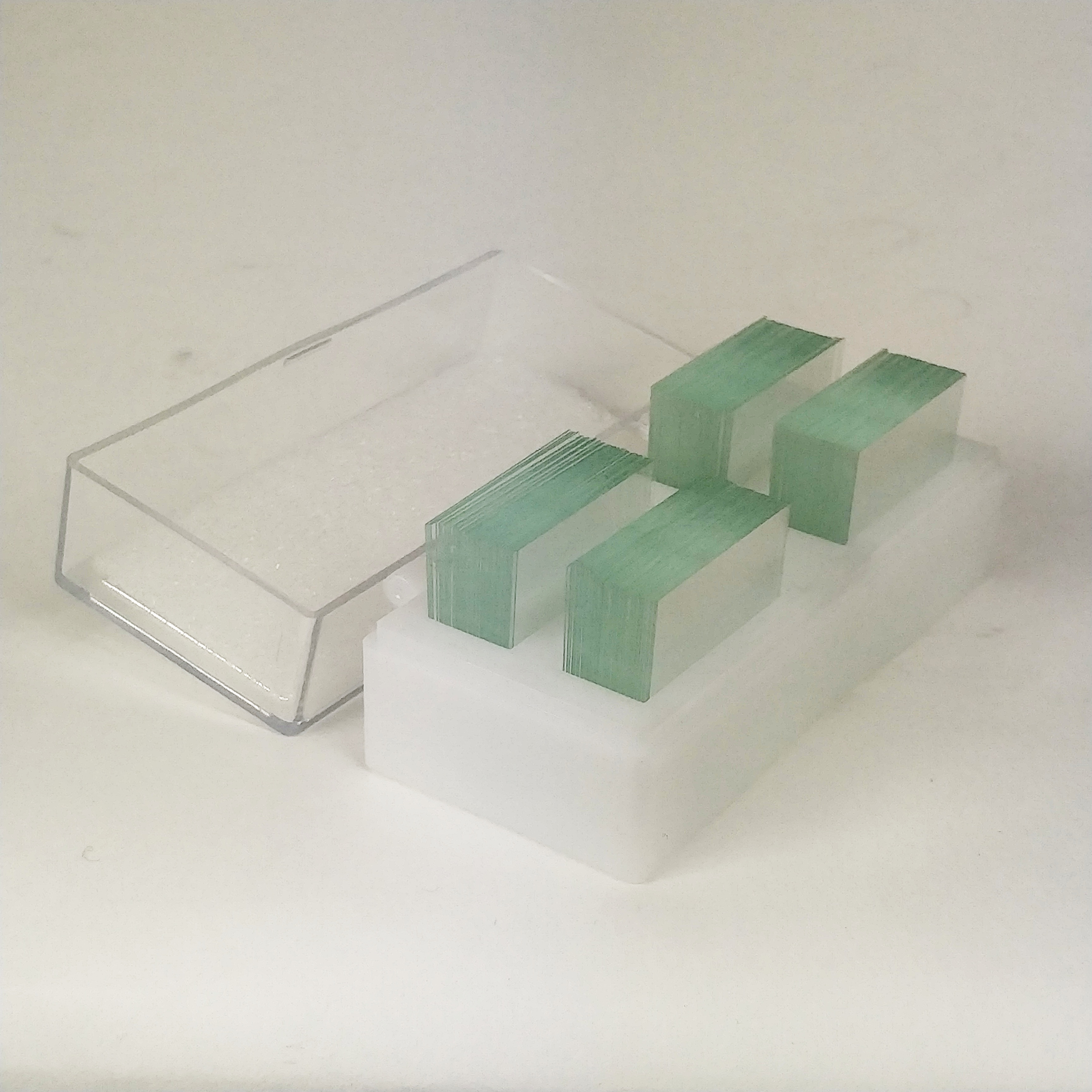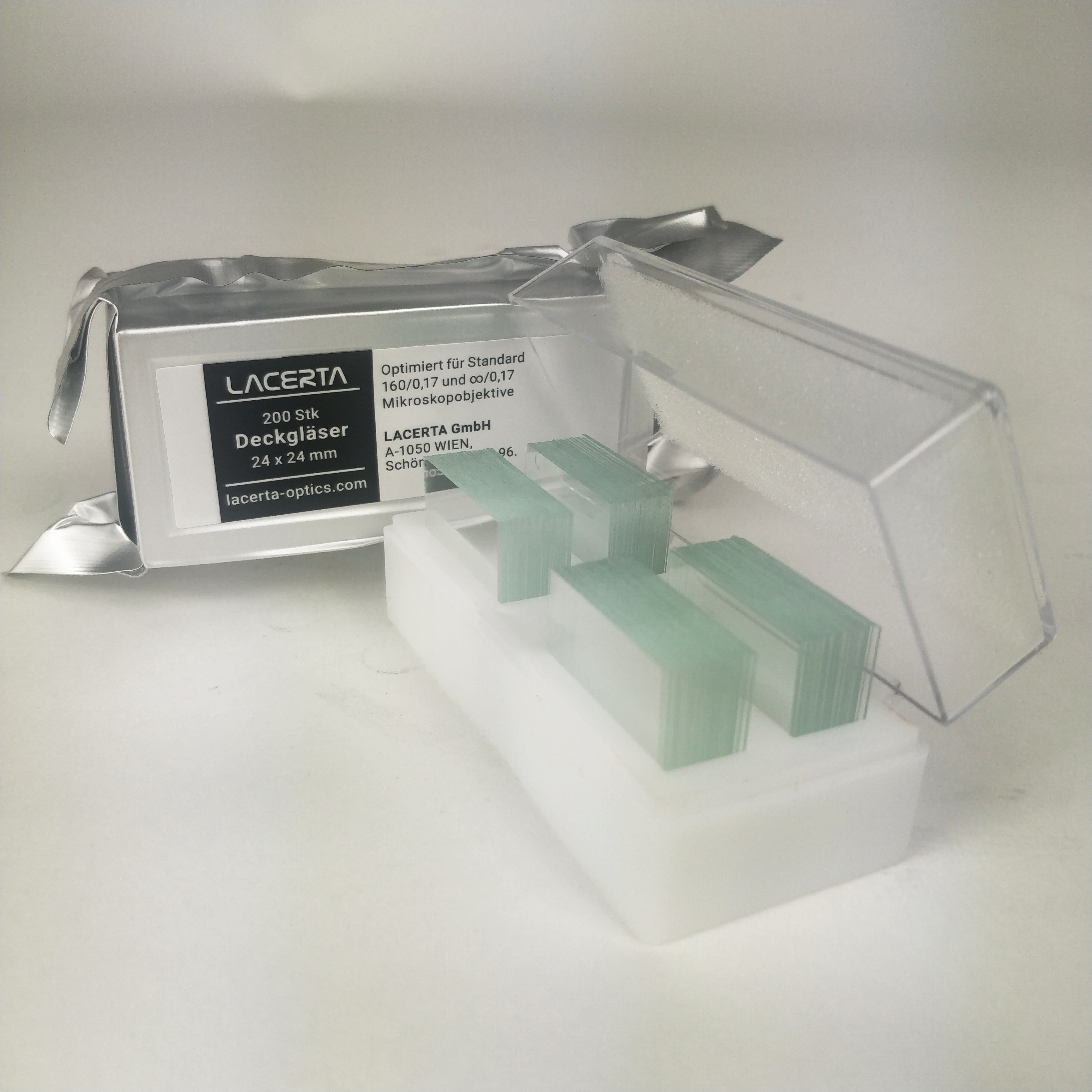 Diese Deckgläser wurden nach unserem Vorgaben mit höchstem Sorgfalt hergestellt. Nach dem letzten Herstellungsschritt wurden die Deckgläser nochmal gereinigt und in 4 separaten Gruppen je 50 Stk verpackt. Da die Deckgläser in der Verpackung stehend platziert sind, es ist leicht mit einem Hand (auch mit medizinischer Handschuhe) rauszunehmen. Es ist zwar das hochwertigste Deckplättchen in unserem Sortiment aber Dank Großpackung die preiswerteste (ein Deckplättchen kostet in 200-er Verpackung etwa 5 cent - im Vergleich sind andere Objektträger in 100-er Packung zwischen 6 und 7 cent)